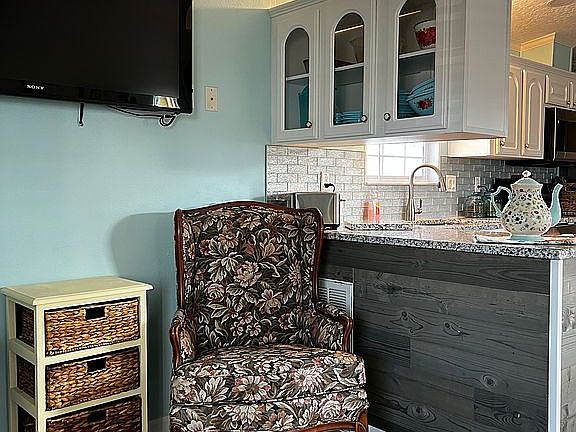Charming one bedroom, one bath cottage located in Naples in Lake San Marino 55+ community. All new stainless steel appliances including microwave, range, refrigerator and dishwasher. Newly installed granite countertops, new backsplash and freshly painted. We have added new ceiling fans, and LED recessed lights, smoke detectors, cathedral ceilings, and covered porch. This home comes fully furnished with everything except for the bed so you’re ready to move right in. Just a short 2 mile drive to Delnor Wiggins state park. Very close to many restaurants and shops. Some of the amenities within the community are pool, shuffleboard, Pickleball, fireplaces, fitness room, and game room.