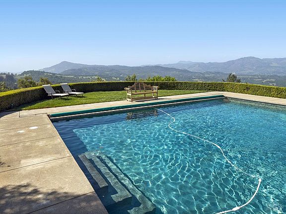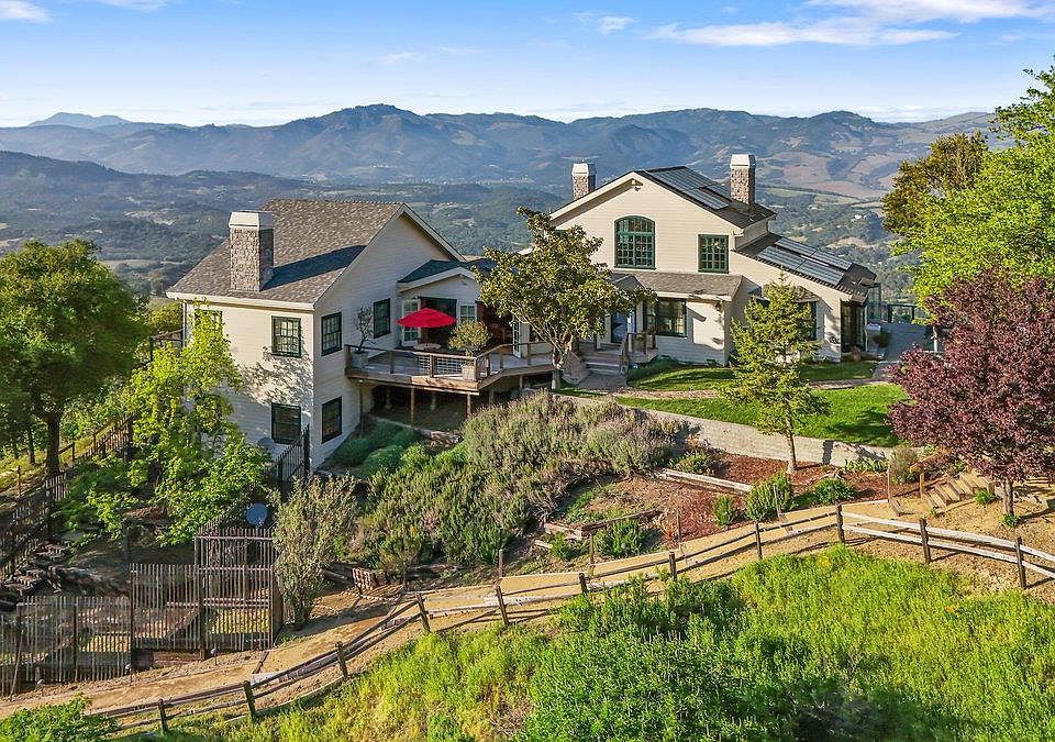 Welcome to your private Wine Country Estate, a hidden treasure nestled atop Sonoma Mountain, offering breathtaking views from Bennett Valley through Kenwood to Glen Ellen and beyond. This exquisite home is the epitome of luxe, perfect for a serene escape. The cornerstone of this estate is the Great Room, featuring a majestic fireplace and a spacious wrap-around deck where you can unwind and soak in the panoramic mountain scenery. A spiral staircase leads up to a lofted library and office. Enjoy the media room with convenient outdoor access to gardens and the gorgeous grounds. The kitchen is a true culinary sanctuary with slab counters, breakfast bar and cozy nook with fireplace. The elegant dining room extends to a private patio with canyon vistas. The Primary suite is a sanctuary in itself, complete with an intimate balcony and a lavish en-suite bathroom featuring a jacuzzi to soak up more outdoor views. The 2nd bedroom provides a cozy retreat while the detached 3rd bedroom serves as a versatile guest suite with a kitchenette. The estate's grounds feature a spectacular pool area with a waterfall, pergola, and an outdoor kitchen. Other features include a Wine Cellar and Hot Tub. Property includes APN #42 (18.08 acres) and APN #51 (3.91 acres).