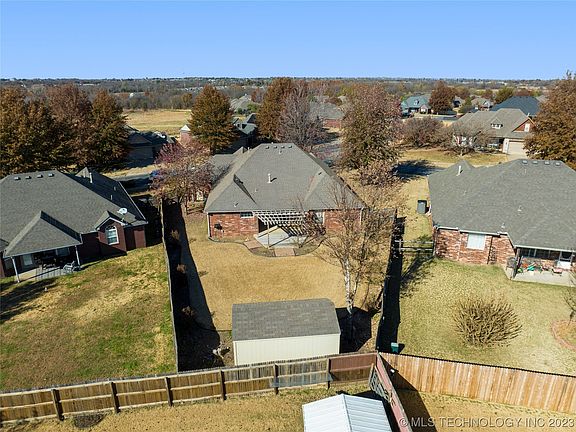 Full brick home located on a corner lot within a short walking distance to Bailey Elementary. Neighborhood sidewalks. Located in Honey Creek at Bailey Ranch, this one-level home is ready for its new owner! All bedrooms are spacious. Home office in the front room has a closet, add French-doors to be the 4th bedroom. Large living area that overlooks the fully fenced backyard. Formal dining room with a walkway to the kitchen. The kitchen has a breakfast nook, an island with storage and electricity, a 5-burner gas range, and a convection microwave. Refrigerator stays. Gas FP in the living room. 3-D TV and 200-watt Sherwood Q-Line Sherwood Surround Sound system stay with the home. Hardwoods in the entry and dining room. Ceramic tile in kitchen, laundry, and bathrooms. The primary bedroom accommodates king-size furniture and has a private bath with a whirlpool tub, a separate shower, a separate commode area with a door, and a large walk-in closet. The 3-car garage has storage shelves and a door that leads out into the backyard. Covered patio with pergola and large storage shed! All flooring was recently professionally cleaned.