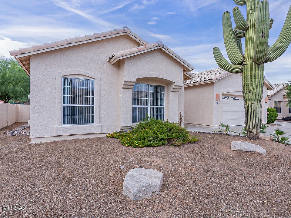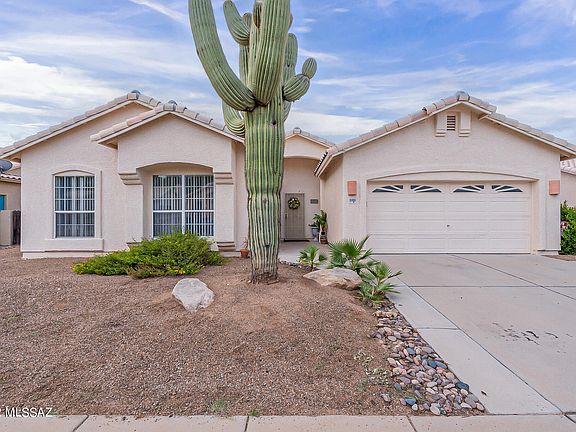 Beautifully maintained 4 bed, 2 bath home in Rita Ranch with smart floor plan and tons of beautiful features. Neutral paint and tile - no carpet. High ceilings and plenty of windows make for an open feeling with gorgeous light throughout. Ample counter/cabinet space in the kitchen situated right in the center/heart of the home. The serene backyard is truly your oasis at home with a covered patio, artificial turf, firepit and sparkling pool. The home and yard are ideal for relaxing or entertaining! The primary suite is generously sized and features a primary bath with dual vanities, separate shower/tub, and large walk in closet. Don't miss out on this charming home!