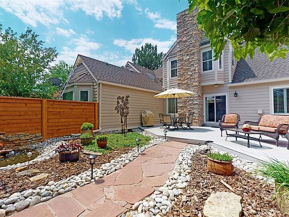 ONLY ONE OF IT'S KIND OPEN FLOOR PLAN IN EXCLUSIVE COMMUNITY of 58 homes. Exceptionally well maintained inside and out! Fantastic location backing to golf course and open space. Hop on your bike or put on your walking shoes for a great ride/stroll on the very close Cherry Creek bike and Highline Canal trails. Private fenced yard with deck and water feature. Huge remodeled kitchen with granite counters, island, and all appliances including main floor washer and dryer. Spacious great room with new, highly efficient gas fireplace. Built in surround speakers. Main floor office with built in shelves and cabinets.(could be converted to main floor bedroom with adjoining 3/4 bath). Custom designed metal and wood staircase railing. Vaulted master suite upstairs has large walk in closet with organizers and drawers and adjoining 5 piece bath with counter height double vanity. 2nd master bedroom upstairs with ensuite full bath. Finished basement with family/recreation room and wet bar, 3rd bedroom and full bath. Den/flex room in basement with closet. Newer furnace and A/C, plus whole house attic fan, humidifier, and water softener. Newer windows. Plantation shutters. Absolutely turnkey.