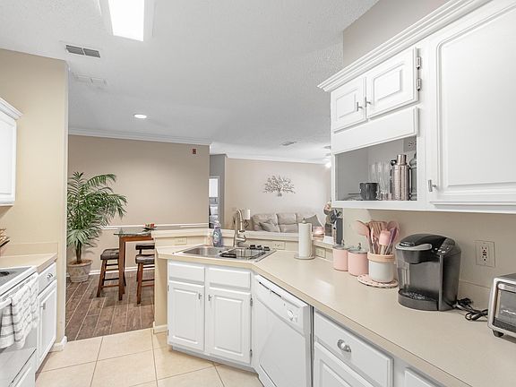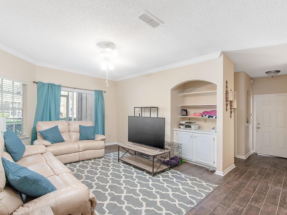 Say goodbye to stairs at this first floor, 2-bed/2-bath condo! Nearly 1,100-sqft, this home has an open-feel with kitchen overlooking the dining/living room combination and its AC system was installed in 2019! Bookshelves in the living room, crown molding and wood-look tile are stylish and practical. Master bedroom is spacious and the huge screened patio brings lots of natural light! Washer & Dryer included and plenty of storage space! Great investment, too! Tenant-occupied! Sail Cove is gated, and has a community pool, hot tub, fitness center, clubhouse, picnic areas and large lake, where you'll find neighbors paddle boarding. All about location? Less than 5 mins away to St. Johns Town Center and St. Vincents Southside & less than 15 mins to downtown Jax and the Beaches! Virtual Tour: https://www.youtube.com/watch?v=rxR_zLkpYS8
