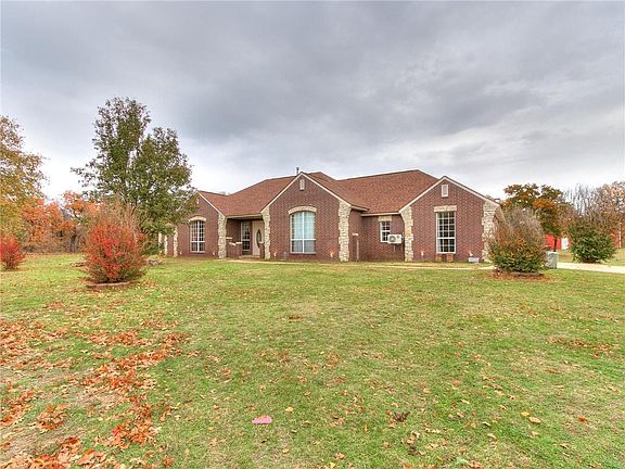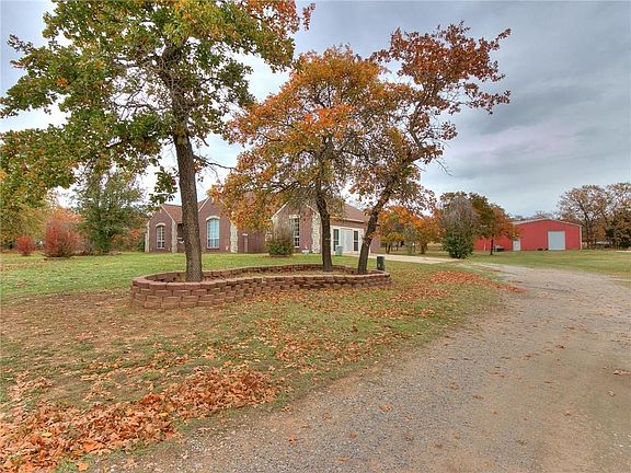 Looking for a place to spread out and get away from the hustle and bustle and where the stars shine a bit brighter? Then this property is calling your name! Access this 5 acre property through the private wrought iron gate. This home features open concept living, a formal dining room, kitchen with plenty of storage and counter space, breakfast nook, three bedrooms, 2.5 bathrooms, and a game room. The spacious primary bedroom has its own en suite luxury bathroom that has been completely updated with modern finishes. When the Oklahoma storms roll in, the whole house generac ensures you won't be without.