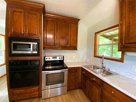 ATTENTION!!! All Hunters, Fishermen & Outdoor lovers, this is the Place you have been looking for. This property sits on the bank of the Marais des Cygnes River. The house & yard sheds sit on the South boundary of the property, which is high off the river. There is a set of wooden stairs that go down to the river bank. This is one of the BEST fishing spots on the river, Walleye, Croppie, Spoonbill & Catfish. You may see deer from your front porch. Everyone will Enjoy the covered picnic shelter, 3 picnic tables, 3 horseshoe pits, Lots of FUN!! pecan trees, Abundant Hummingbirds, 2 yard sheds. Fiber internet is available so you can work from home and leave the stress in the City. This remodeled home features Cortex Plus flooring, New countertops, faucets, light fixtures & more. Also featured is a microwave/convection oven Plus an extra built in oven. Come see for yourself!!!!