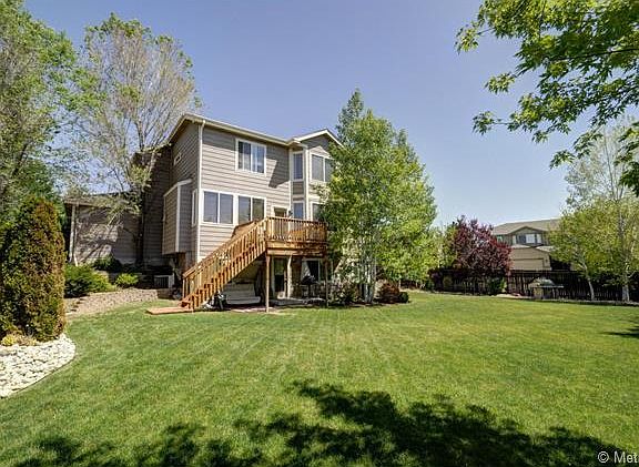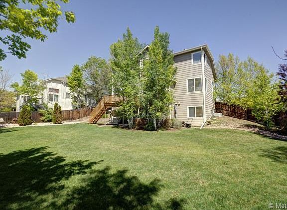 Back on the market--Buyers sale fell! Homes w/5 bedrooms + office in this neighborhood are rare! This one has several custom touches! Custom trim work including stunning oak wood beam coffered ceiling in the formal dining room & custom bathroom vanities & fireplace mantle; Hardwood floors on the main floor w/vaulted ceilings & phenomenal natural light throughout; Master bedroom is truly a retreat! Vaulted ceilings, beadboard wainscoting continues the custom feel, 5-pc bath includes huge soaking tub & views of the mountains & city at night! Huge corner lot w/spacious backyard, mature landscaping & garden areas, recently refinished wood deck, enjoy the firepit or horseshoes in the backyard; Finished walkout basement includes bathroom, add'l guest bedroom & office/den + rec room perfect for a pool table or media area; 3-car garage has exterior access door & lots of room for tinkering & storage; recessed lighting throughout the home & ample storage features; steam humidifier; easy commute
