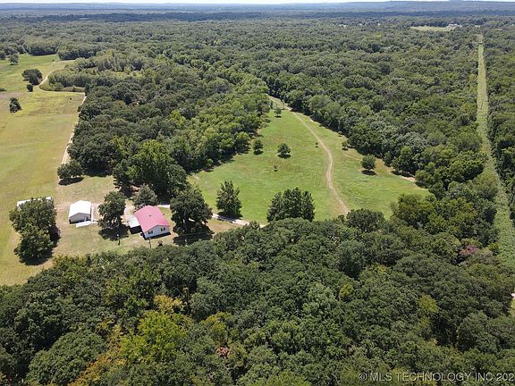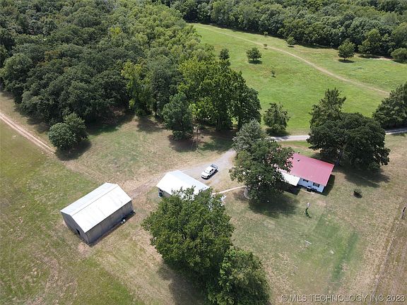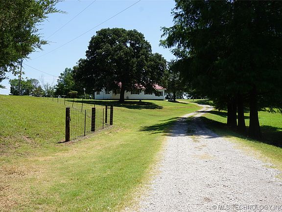 The manicured entrance is beautiful and provides a buffer to Highway 56 just over 2 miles from downtown Okmulgee ! Even with the proximity to the highway and downtown Okmulgee, once on the property you feel isolated. The 1472 ft2 3-Bedroom 2-Bath residence sits prominently on the elevated east side of this property. Two separate living areas and a covered porch provide all the gathering space needed.