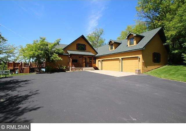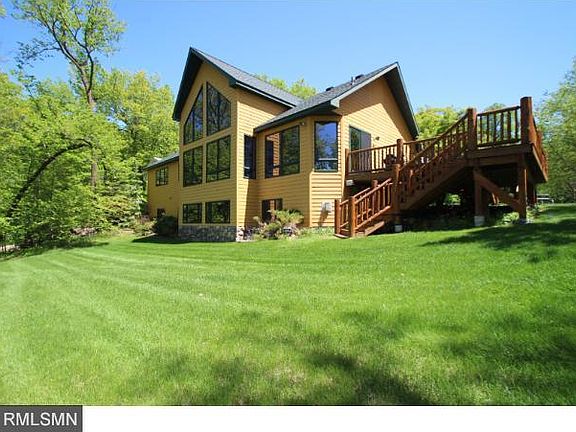Lake home w/west facing lot for sunsets on Big Birch Lake. Hard sand bottom w/sandy beach. Open floor plan, vaulted ceilings, 2 gas FP's, sec system, log railing & knotty pine throughout. Spectacular views, deck, tri garage & underground sprinklling.