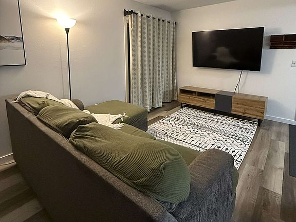 Fresh paint, new floors, new patio decking, great neighbors and fabulous charm. This north-facing unit offers great escape from Colorado's blazing sun, and its proximity to Aurora's amazingly diverse food scene, are some of the fantastic highlights that come from living at Raintree. Our fully furnished unit includes a queen and full size beds, built-in closets, an 80" mounted flat-screen, adjustable standing desk and a private patio. This family-, dog-friendly community is also perfect for professionals, especially in the Healthcare field. HCA, Anschutz, Children's Hospital and a large VA campus are within 7mi of here. Our unit is available to be rented out one room at a time, or as a whole, for a combined total of $2600/month. Short-term, midterm and 12+ month lease options available. Water, sewage, electric, Internet and Wifi included in rent. This unit is smoke-free, pet friendly ($200 non-refundable deposit) **This property is being listed in half: The bigger bedroom is $1400/mo, smaller is $1200/mo, same amenities shared between both**