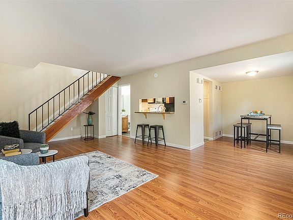 UNBEATABLE VALUE AND FANTASTIC LOCATION. Charming 2 bedroom 2 bath unit with lots of potential! The entire home was recently remodeled with new paint and carpeting. Fenced patio and attached shared garage with one deeded space. The home falls within the highly desirable Cherry Creek School District! The kitchen has been updated with granite countertops. Washer/Dryer are included. A new furnace was installed in 2023. Lots of storage space. Well-run HOA replaced all roofs in 2019 and the mature landscaping throughout the complex, replaced the sewer line a few years ago, and recently painted exteriors. The complex has wonderful amenities, with the pool and tennis courts located close to this unit. Conveniently located near restaurants and freeways for easy commuting. Close to I-225 and I-25, DIA and downtown.