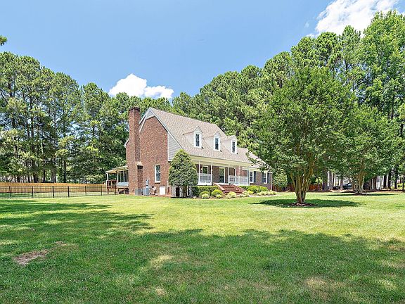 Four bedrooms, 3.5 baths, downstairs guest room, three season room with wrap around deck, large front porch, spacious living areas. Newly refinished hardwoods in foyer, living, dining, family rooms. Freshly painted throughout in neutral alabaster. Tile in kitchen, baths. Living room/office off foyer with French door entry. Separate dining room. Family has fireplace with built-ins. Kitchen, with bay window breakfast nook, has all stainless appliances, granite countertops, tile backsplash, prep island. Master has walk-in closet, ensuite with double vanity and walk-in shower. Secondary bath has walk-in shower and claw foot tub. Third bath, downstairs, has walk-in shower. Huge bonus and laundry room, washer and dryer included. Two car garage with workbench. Spacious driveway provides extra parking. Large one acre lot with flat fenced back yard, beautifully landscaped front yard. Tankless water heater, 2018. Downstairs gas pack HVAC 2018. Upstairs gas pack HVAC 2021. Split HVAC added to bonus room 2021. Well updated with full system replacement 2021. Septic pumped end of 2023.