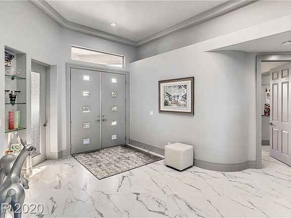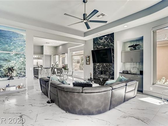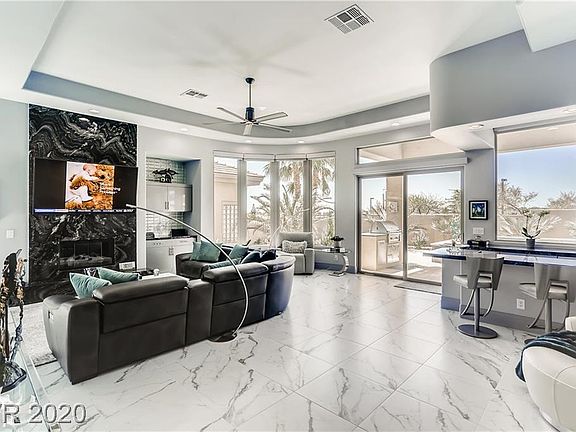 Enjoy the luxury of The Ridges high end quality finishes and exotic materials joined to the ideal Summerlin central location. The quiet Aventura guard gated community of 65 single story homes includes the best neighbors coupled with serene security. You know you have arrived at a very special home as you walk in to the porcelain tiled courtyard to witness the soft contemporary finishes, where every detail, every material, and every designer selection reflects quality, class and elegance. EVERYTHING IS NEW! Enjoy the majestic mountain, canyon and city light views with spectacular sunrises and sunsets from the preferred southern exposure home.