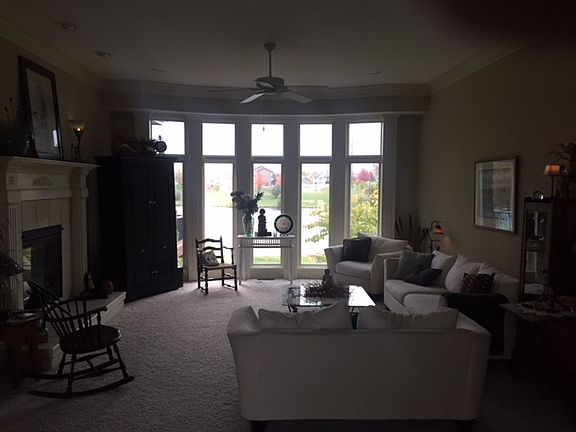 Reverse one and a half on cul de sac, backs up to lake. Granite counter tops in kitchen, custom cabinets and woodwork. Finished walk out basement with full bar, dishwasher & mini-fridge. Main floor master bedroom with fireplace and large walk in closet. Suspended 3 car garage for huge storage space. 2 year old 96% furnace and A/C, 1 year old water heater. Central vac. Underground fence.