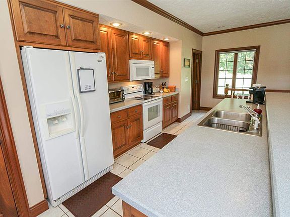 Home Is Where The Heart Is. Move those you love into this ranch home on Northwest side. 4 bedrooms, 3.5 bathrooms built by John Elpers Features Pella Windows, 6 panel wood interior doors, Welcoming great room with crown molding, 9' Ceiling throughout main level, master suite with linen closet, walk-in closet, Quality Custom Fehrenbaher Cabinets in kitchen, laundry and baths. New microwave, dishwasher and disposal, tile floors, pantry, work island, and eating area that leads out to the 12 x 42 Trex deck with amazing panoramic views of fall colors. Nice office for the remote employee. Owner Suite has access to the deck, a lovely master bath, and walk-in closet. Finished, walk-out basement (poured walls) has additional bedrooms and family room, Green House vegetable garden, Oversized 2.5car garage, plus 30 x 40 pole barn. Located on 5.5 Acres good potential for horses! Road is maintained by the county and cleared during major snow falls.