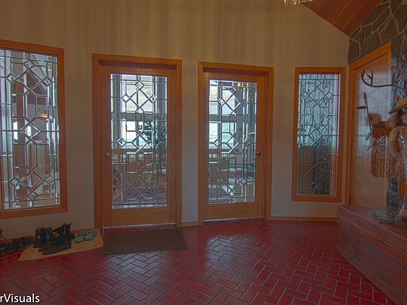 Breathtaking views on 2.5 acres of privacy! Home offers an open flr plan w/sunken LR, wall of windows, 22' cathedral clgns & rock FP. Frml DR & wet bar. Kit w/solid surface cntrs, BI refrigerator & freezer, lg island, brkfst bar & sunrm/studio. MBR on main level w/WI, priv BA w/sep tub/shwr. Lwr lvl w/lg FR, wood stove, kitchenette, lots of storage & elevator. Lg 3 car garage/RV parking!