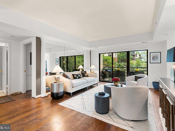 Welcome to 10001 Windstream Drive #203 in the coveted Watermark Place Condominiums! This stunning unit is a rare find in the heart of Columbia, showcasing high-end updates and finishes throughout and a highly sought after garage space too! As you step into the foyer, you’ll be captivated by the spacious, open layout highlighted by beautiful hardwood floors. The updated windows flood the space with natural light, complemented by mirrored walls that enhance the brightness. The expansive living and dining areas are perfect for entertaining or enjoying a cozy night in, with access to a lovely balcony overlooking picturesque gardens and the community swimming pool. The all-white kitchen is a chef’s dream, featuring stainless steel appliances, a double oven, ceramic tile flooring, granite countertops, and ample storage—including glass shelving and a cozy breakfast nook. The primary bedroom is a true retreat, complete with a walk-in closet featuring custom built-ins and a luxurious en-suite bathroom with a separate shower and jetted tub. The second bedroom is generously sized, with convenient access to a second bathroom. Additional highlights include a laundry room and two storage lockers. Residents of Watermark Place enjoy a wealth of amenities, such as beautifully maintained grounds, an outdoor pool, a fitness center, club rooms, concierge services, and secure entry. This prime location is within walking distance of shops, restaurants, entertainment, and parks. Don’t miss your chance to experience luxury living at its finest—this gorgeous home won’t last long!