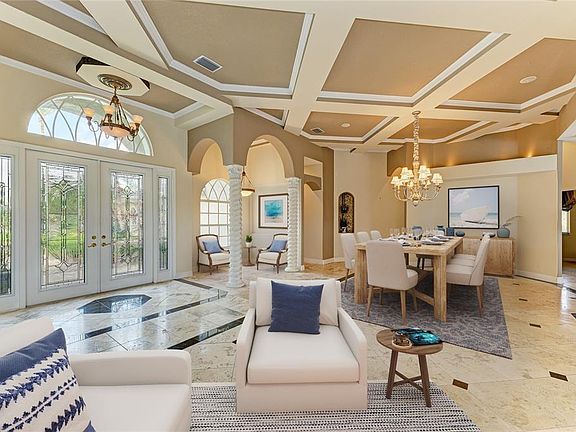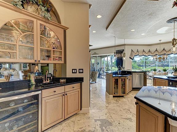 Heated pool and spaGas fireplaceBay windowsIsland kitchenExpansive lanaiCustom wood ceilingsDecorative tray ceiling
