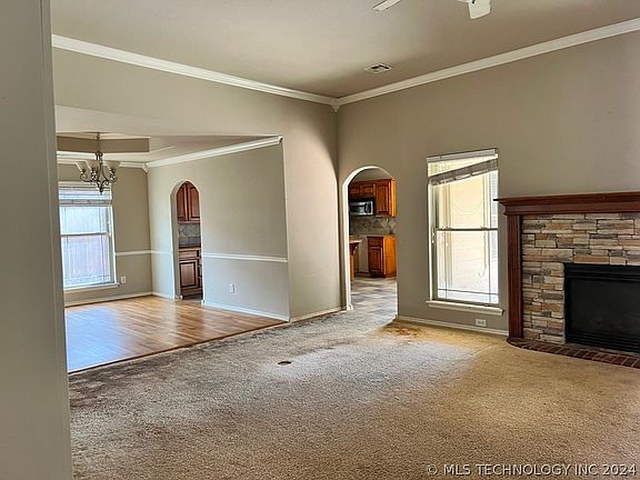 Large contemporary Home with 4 bedrooms or 3+ office down. Large gameroom upstairs with bathroom. 2 full baths down. Split plan. Arch doorways, Formal Dining Room, some hardwoods down. Spacious kitchen with island & breakfast nook. Lots of cabinet space. Extended covered patio. Easy Walk to Owasso schools. This property MAY qualify for Seller Financing (Vendee).