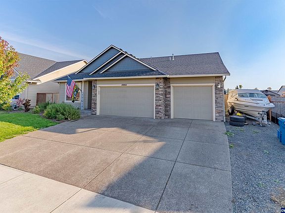 Newer single level home with 3 car garage, RV space, large covered patio, fenced yard and field behind. Open floor plan has vinyl plank flooring, kitchen with granite countertops, pantry and gas stove. Family room offers a lot of space with a gas fireplace to enjoy on the cooler days. Yard includes a large garden shed and underground sprinklers. Easy access to I5 and surrounding towns.