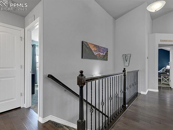This property is a must see! You are welcomed with beautifully maintained wood flooring that opens to a spacious living room, dining room and kitchen. With fresh paint throughout the main level and the bright white cabinets with the beautiful pop of color makes this home perfect for your next entertaining experience. With the primary bedroom located on the main level, this bedroom has a lovely master bathroom with an extended walk-in closet that has been updated with purpose in mind. With two additional rooms on the main floor and a bathroom to accommodate, the excitement is actually downstairs. In the basement you will find a large grand room, fully finished ready for anything. The two downstairs bedrooms are also accommodated by a full bathroom, convenient for any guest. Do not forget to check out the ample storage space. This community is top in its class with some of the best community amenities in the city with access to the golf course and recreation center, miles of walking trails, numerous parks and greens spaces and close proximity to all levels of District 49 schools. Entertainment is also right at your fingertips with the Meridian Ranch corridor just a 5-minute drive away. What more could you ask for with a well maintained home in the award winning neighborhood of Meridian Ranch.