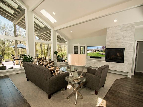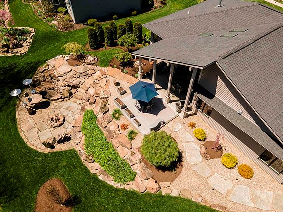 Google 10002 Foxwood Passage Fort Wayne IN 46835 to watch the YouTube Video. WOW! The Original Custom Built Frazier Floor Plan by Windsor Homes named after this Owner. This Contemporary California Style Ranch home in Forest @ Foxwood sits on an Extensive (to say it lightly) Professionally Landscaped Yard. In the backyard 3 Different outside Sitting areas with a 281 sq ft covered porch with a Built In Custom made Fire Table , 165 sq ft open Trex Deck area, plus an almost 300 sq ft outdoor fire pit area with a custom Table & Chairs all over looking a beautiful nature preserve wooded area. Walk in the foyer and see the Wall of Windows in the Vaulted Great Room with Sky Lights, Ceiling Beams & a Custom 2 Way Tile surround ed Fireplace. This Open floor Plan flows right into the Kitchen with Custom Cabinets, Breakfast Bar on the Center Island, Quartz Counter Tops, Stainless Steel Appliances (New LG Refrigerator), Tile backsplash, Hood Vent above the Range, Below Cabinet Lighting, Corner Walk in Pantry with the microwave tucked away out of site. Dinning off the Kitchen with fantastic views of the back yard. Spacious Main bedroom with a ceiling fan and perfectly placed windows to get the right natural lighting. Main Bath with Kitchen height cabinets, walk in tile shower and a soaking tub plus a walk in closet. 2nd bedroom or home office has French glass doors and corner windows. Nice sized 3rd bedroom. 2nd full bath like brand new with tile flooring. Now to the garage this almost 4 car garage has on the main door 16 ft wide & 8+ ft tall door with windows (22'x22'). The 3rd bay is 12ft wide by 31ft deep total 884 sq ft gearage space and has 4 Windows on the eastside, Built in Cabinets, hanging wall, it is heated & has a sloop sink and a Urinal (we are counting this as a 1/2 bath) Perfect for storage or working on something. Neighborhood has an Association Pool, so all of the enjoyment and none of the maintenance! Other notables: Whole House water filter system, new carpet in the main bedroom, Driveway curb cut (so no bump, perfect for a low riding sports car), High End Window treatments, one of a kind backyard!
