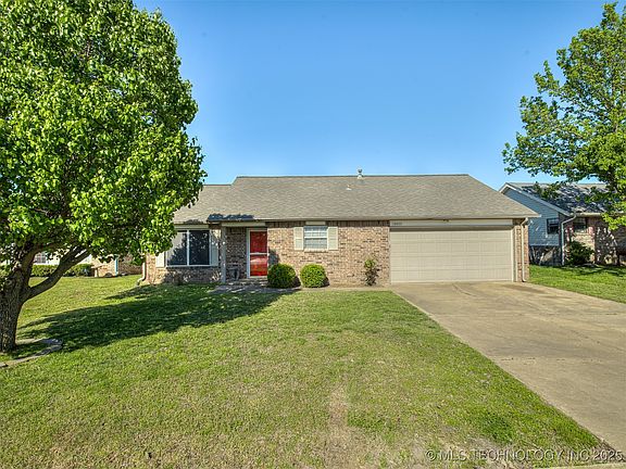 Adorable home with 3 bedrooms, 2 bathrooms, and 2-car garage. AND SO MUCH MORE: AC replaced in 2024 with 10-year transferrable warranty, vaulted ceilings, fully guttered, STORM SHELTER, quick access to highway 75, new interior paint, shelving in garage, inside laundry room, large back yard with shed, and USDA eligible (loan with zero downpayment). ALL THIS for $189,000. Cherokee Industrial Park in Owasso is less than 5 miles away; Downtown Tulsa is 12 miles; downtown Owasso less than 7 miles. Great location and fantastic home!! This home also qualifies for USDA Rural Development loan with ZERO downpayment. Multiple offers. Deadline is 7:00 pm Saturday, Apri8l 19th.