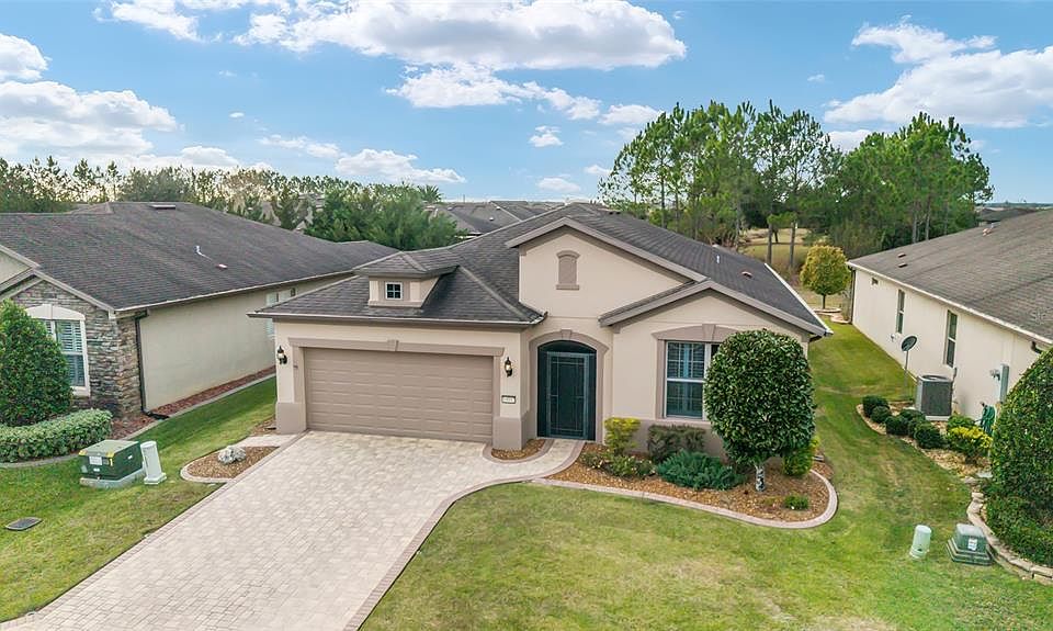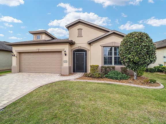 Welcome to your new home in Stone Creek, one of Ocala’s most sought-after 55+ gated communities. Nestled on a beautifully landscaped premium lot, this thoughtfully designed Abbeyville model offers the perfect blend of comfort, elegance, and function with 2 spacious bedrooms, 2 full bathrooms, and a flexible den/office ideal for working from home or hosting guests. From the moment you arrive, the curb appeal sets the tone with a paver brick driveway, a charming covered entry, and updated exterior paint. Step inside to a light and airy open-concept layout highlighted by high ceilings, neutral tile floors, plantation shutters throughout, and elegant crown molding throughout the main living space. The split floor plan offers privacy with the guest suite located at the front of the home—featuring a spacious bedroom and a beautifully appointed bathroom with a hydrotherapy walk-in tub and granite countertops—while the owner's suite is tucked quietly in the back. The den/office features double French doors for added privacy and flexibility. Perfect for reading, working, or even converting into a 3rd bedroom. The heart of the home is the stunning chef’s kitchen—featuring granite countertops, an extended bar seating area, a pantry, upgraded white cabinetry with crown molding, and a beautiful glass tile backsplash. The newer black appliances, including a French door refrigerator, offer a sleek modern touch, and the window over the sink brings in an abundance of natural light. The dining and living areas flow seamlessly together, making entertaining a breeze. Just off the living area is a screened lanai with both covered and open-air areas to relax and unwind in privacy. With the fenced backyard and lush landscaping, it’s truly a tranquil retreat—ideal for birdwatching or enjoying your morning coffee. The spacious owner’s suite offers tile floors, a large walk-in closet, and a spa-like ensuite bathroom with dual vanities, a fully tiled walk-in shower, and a private water closet. Additional upgrades include rounded drywall corners, sun film on the back windows, and a laundry room with utility sink and cabinetry. The oversized 2-car garage offers 25 feet of depth, epoxy floors, and overhead storage racks, perfect for organizing seasonal items or tools. This is a move-in-ready home with thoughtful upgrades throughout and quality craftsmanship that stands out. Living in Stone Creek means more than just a beautiful home—it’s a lifestyle. Enjoy access to the championship golf course, resort-style indoor and outdoor pools, tennis and pickleball courts, a softball field, dog parks, walking trails, community garden, fitness center, and a vibrant schedule of social events and clubs at the multiple amenity centers. Located just minutes from Publix, restaurants, medical centers, and shopping, Stone Creek also offers easy access to I-75, the World Equestrian Center, Downtown Ocala, and all that Central Florida has to offer.