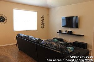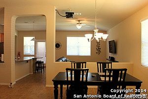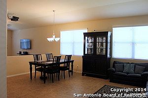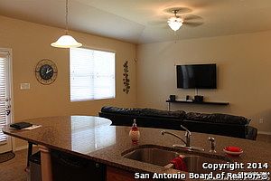 3 yr old beautiful Meritage home. Well maintained with tile flooring throughout except bedrooms; granite countertop in kitchen; expansive breakfast bar; soaring ceilings; window coverings throughout; spacious closets; very energy efficient (utility bills avail); burglar alarm; lawn sprinkler system. Enjoy al fresco dining under a spacious covered patio overlooking an expansive, pretty backyard. Close to Randolph AFB, Ft. Sam Houston Army Base, Forum Shopping. Move-in ready!!