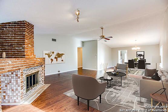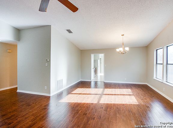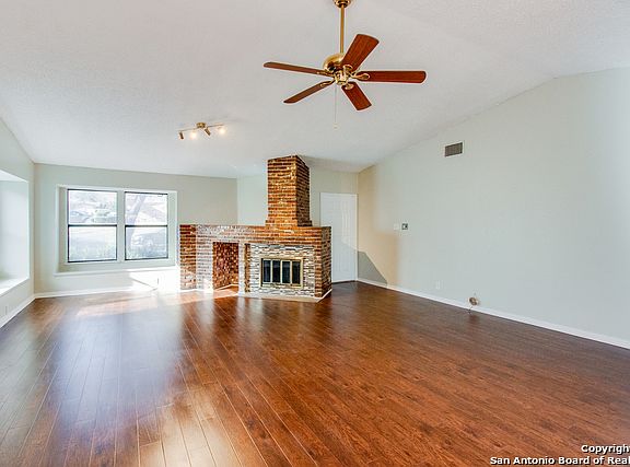 Great open floor plan with spacious living/dining combo and brick fireplace. Kitchen features eat-in area, granite counter tops, new range and dishwasher. Large master with walk-in closet and double vanity master bath. Backyard has mature trees, patio and storage shed. Roof replaced in 2017, new carpet and fresh paint throughout. Easy access to military bases, forum, I-35 and 1604.