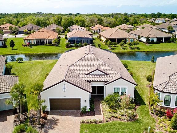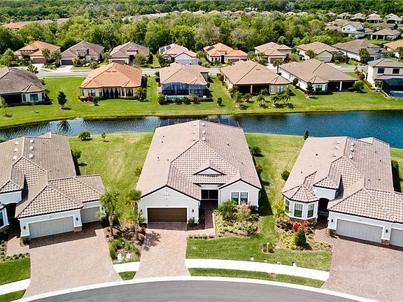 Gorgeous MASTERPIECE. You absolutely must visit this Elegant pool home on an oversized pond lot. This home is the wildly popular Taylor Morrison Pallazio floor plan in the Resort Style community Esplanade at Artisan Lakes. The meticulous owners have spared nothing at making this home Spectacular. Built in 2019 with many incredible upgrades, this Home includes 8' tall doors, whole-house hurricane impact windows (NO shutters needed!), Quartz countertops, Tray ceilings, crown moldings, 42" solid wood cabinetry in the kitchen, a large kitchen island, an extended covered lanai for extra shade, and an oversized garage. This home also includes a Den with French doors. As if that wasn't enough, the seller added many more upgrades to include an APCO-X whole-house air purification system that is 99.99% effective in KILLING COVID-19 VIRUS (see product data sheet in attachments), remote controlled privacy shades in the great room and kitchen. The floors are adorned with wide Laminate wood planks throughout the main areas and 24x24" Porcelain tiles in the master bathroom, laundry and guest bathroom. Laundry room with upgraded cabinets including a laundry sink. Master suite is an Oasis. The Ensuite has a beautiful dual entrance shower, large dual vanities, and a huge walk-in closet. One the most beautiful parts of this home is the pool area. A custom pool with waterfall, sun shelf, and an auto-fill system (NO manual filling needed) are the finishing touches to this one of a kind home. Relax and unwind in your very own pool overlooking a beautiful pond to enjoy those spectacular nightly sunsets. Gas and water rough-in provided for a future outdoor kitchen. There are many extra features which include tasteful low-voltage landscape lighting in the front, upgraded lighting fixtures, designer chandeliers, tankless water heater, and an alarm system. The stainless steel appliances have been upgraded as well. This home is ready for new owners to move in and experience what Resort Style living is all about. The Community center features a full-size fitness center, a stunning resort-style pool, hot tub, dog park, fire pit, pickle ball, tennis, bocce ball, and Scenic walking trails overlooking the lake. An on-site Lifestyle Director will be on hand to coordinate special activities, parties, and events. Close to I-75 and I-275 for easy commutes to St. Petersburg, Bradenton/Sarasota, and world-famous beaches. This is one home you don't want to miss.