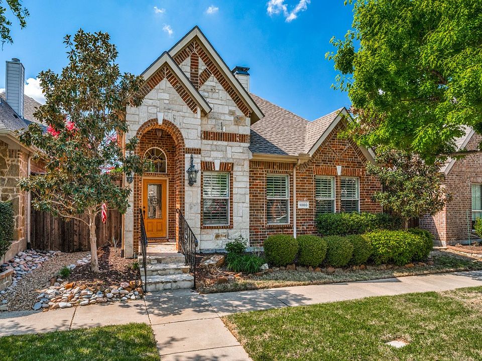 *Offer deadline - Monday, April 17 at 5 pm* Beautiful garden home on interior lot backs to greenbelt in Frisco's Sedona subdivision! Welcoming entry opens to living room with wall of windows, wood flooring, fireplace & 10 foot ceilings. Kitchen features granite counters, breakfast bar, gas cooktop, custom slide-out shelves, soft-close drawers & huge walk-in pantry! Adjoining dining room has plenty of space for entertaining. Private primary suite has a custom closet system, garden tub, separate shower & dual sinks. Serene back patio with beautiful landscaping, arbor & water feature creates additional living space! 2-car attached garage with built-in storage closets & workbench. This home is conveniently located near Collin College, Frisco Athletic Center, Stonebriar Mall, SH 121 & DNT!!