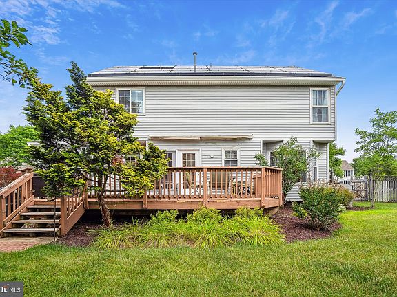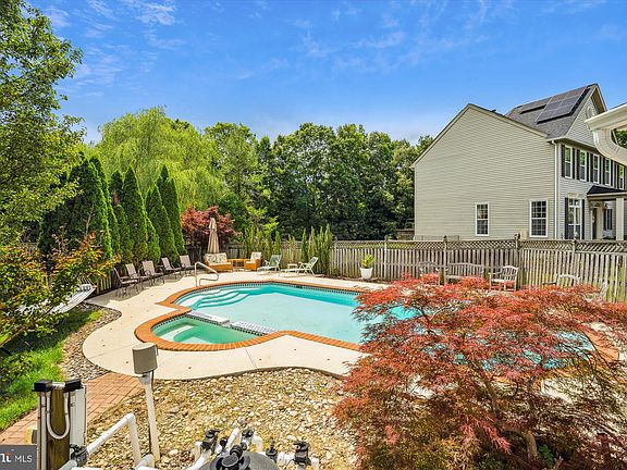 Welcome to this lovely three-bedroom brick-front colonial which sits on a beautifully landscaped property at the end of a quiet cul-de-sac. Whether taking a fresh dip in the inground swimming pool and spa or entertaining with family and friends, this home has great outdoor living space. Enter through a two-story foyer with hardwood floors which leads you to a hallway with a half bath and the rest of the main living space with crown molding throughout and plenty of large windows which allows for a lot of natural light. The living room has floor-to-ceiling windows and the formal dining room has the addition of chair rail, and a large bay window. The kitchen features granite countertops, an island, a built-in microwave, stainless steel appliances, and French doors leading to a deck with a motorized retractable awning overlooking the fenced backyard and pool. Note the pool has a gas connection and a separate meter. Step into the family room and enjoy the gas fireplace and the view through its many windows. The upper level has a primary bedroom with cathedral ceilings, a walk-in closet, and an en suite bathroom with a double sink, a soaking tub, and a tile surround shower. You will also find a sizeable hall bath with a double sink, a tile surround tub, and tile plank flooring. The washer and dryer are also conveniently located off the spacious hallway along with two more bedrooms. There is lots of storage space and lots of potential for this unfinished basement with a rough-in for a bath and two sump pumps with battery backup. In the last 2-3 years, the owners have replaced many large ticket items and a few appliances, as well, including the HVAC SYSTEM, ROOF, GUTTERS, UPSTAIRS CARPET, AND PRIMARY BATH SHOWER! The garbage disposal. and the washer has also been replaced. That’s not all. The owners have installed energy-efficient solar panels. Say goodbye to high utility bills! Convenient to commuter routes, shops, and restaurants. Within walking distance of the community playground and the South Laurel Neighborhood Park.