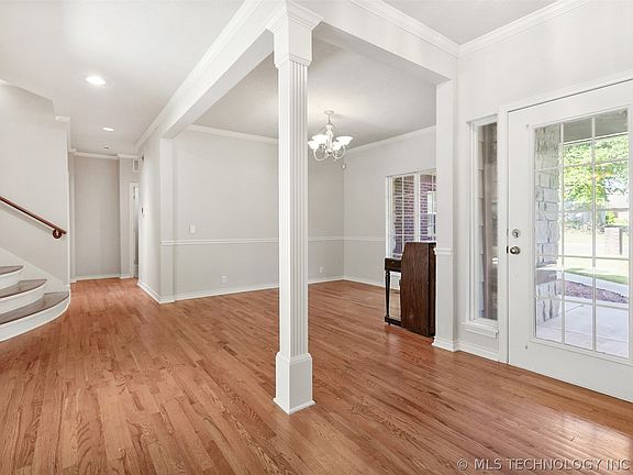 Welcome to South Tulsa’s Ridge Pointe Neighborhood! AMAZING location for all your everyday needs. This spacious 2-story home is a little over 3000 Sq. Ft with a fantastic floor plan which includes a large living room with tons of natural light, and a dual fireplace, along with a formal dining room that has hardwood floors. The island kitchen is large with cabinets and storage galore. The Primary bedroom is large and spacious with its own private deck overlooking the backyard and greenbelt area. There are 3 additional bedrooms upstairs each with walk-in closets. Bedrooms 2 & 3 share a Jack-n-Jill bathroom while the 4th bedroom has a private full bath. Also upstairs, there is a game room/bonus space, as well as a small office with a built-in desk. The interior was just repainted, and new carpeting installed throughout. New in 2023 the roof and both heat and air systems. You’ll also have peace of mind knowing there is a 12-person storm shelter, if ever needed. Neighborhood amenities include a pool, a park & playground, a fishing pond, and walking trails.