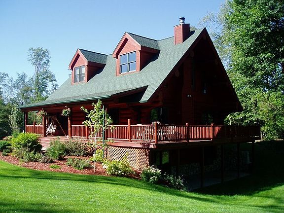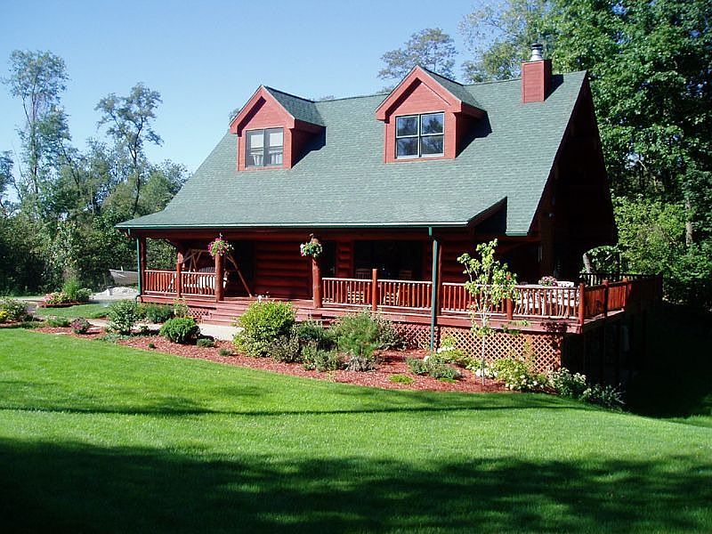 This fabulous, 4 bedroom, 4 bath, custom built, gabled, hand-hewn full scribed log home is truly one of a kind. Constructed with full white pine logs from Canada. Handcrafted open staircase from great room leads to 2nd level loft overlooking the elegant, yet rustic wood-burning fieldstone fireplace. Natural light abounds from large-paned windows and sliding glass doors. You'll enjoy this custom kitchen from the gorgeous cabinetry to the wide plank white pine flooring & beautiful center island with snack bar. Lots of ceramic tile throughout this home adds to the beauty that surrounds you. All new steel appliances. Many common areas: living room, loft, entertainment room, recreation room. At least 3 closets on each of the three levels. Master suite contains large bathroom with jetted tub and custom tiled shower with two heads. Full finished lower level makes this a great home for a family & entertaining. Covered wrap-around porch. Play set and oversized garden shed with loft match home. Delightfully rolling & wooded 5.9 acre parcel completes this serene picture. Hunting, hiking, maple-tapping, gardening, cross country skiing, bird-watching, are all perfect for this property. Popular area for Lowell school of choice, bus close by. 30'x30' garage with heated and insulated office. Great internet access. Many updates. Feel your stress melt away with your first tour!