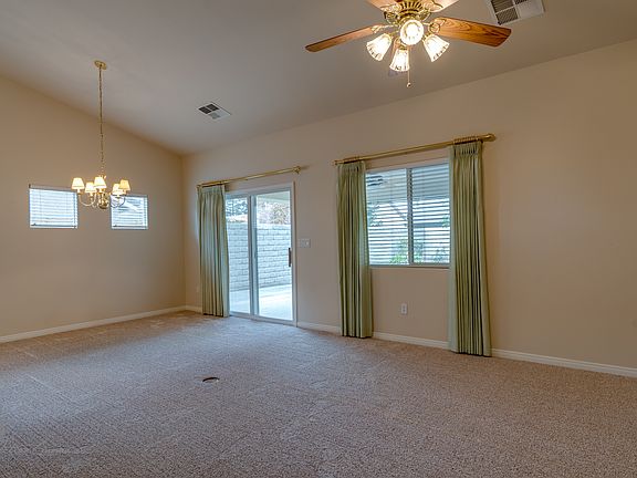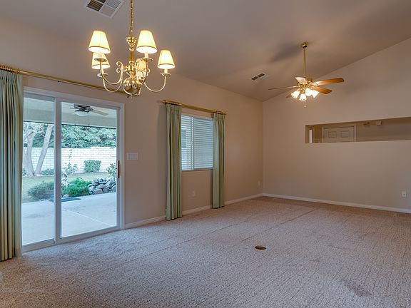 Lovely home located in Seven Oaks in the gated Adult Community. This home boast 2 bedrooms, 2 bathrooms, office, and formal dining room. New carpet and paint throughout, wood plank tile flooring, the master bedroom has a walk in closet and large extension area for the office with sliding glass doors out to the covered patio overlooking a small waterfall. The backyard is surrounded by a block wall. Enjoy all the amenities with the club house, gym, and pool area just walking distance away.