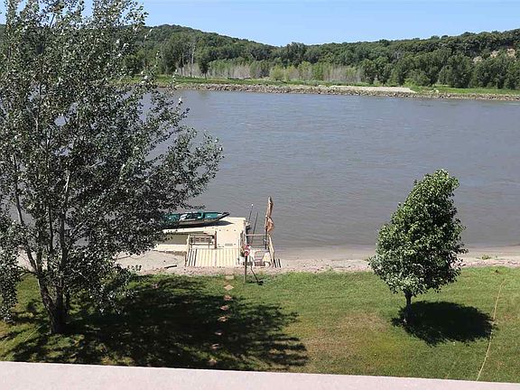 Gorgeous custom built 1 owner brick home. Phenomenal views of the Missouri River, abundant wild life like deer, turkey, eagles, fox and you can fish right off the shore station in your back yard. Approximately 200 feet of river frontage. This home has an open floor plan with views from the bedrooms, dining room, living room, kitchen, family room, loft area and the wrap around deck. The home was built with quality in mind, The sellers had the home build in 2007 and chose top of the line Pella 3 pane windows with blinds in between the panes for easy cleaning. The trim, doors and cabinets are all oak with oak laminate lifetime floors. The loft area has a deck which will enhance those spectacular evening views. Radiant heat floors in the attached 3 car garage and full basement, The concrete polished floors in the basement add easy clean and low maintenance. A pool table is negotiable for your entertainment. There are 2 generous sized bedrooms on the main level and possibility to add 2 more in the lower level. Main floor living with laundry and 2 full baths and lots of storage. The home boast a walk out basement that has beautiful river views for your guest enjoyment. Do you love to tinker? You will enjoy this heated and air conditioned shop right off the family room. Don't miss out this once in a lifetime find.