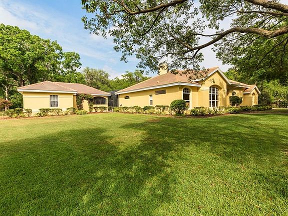Amazing value & opportunity to grab this slice of true Florida living in this unique, one-of-a-kind home that is not only beautiful, but on a home site rarely available in this convenient location. This is the kind of home & view that will capture your heart. You must see this one in person to appreciate all it has to offer. Situated in the estate section of River Club, there are 2 structures on this incredible 1.4 ac. home site. Main house has 2564 sq ft of liv. space & a 2nd structure w/ 876 sq ft, for 3440 of A/C space. Main house has 3 bdrms, 3 ba., great room w soaring clg, fireplace, huge den/office, + an extra-deep side-load gar. The 2nd structure is currently used as a pool house/party rm & is has a w/ wet bar w dishwasher, full ba, storage & can easily be in-law qtrs, playroom, fitness rm, art studio, home-based business - just use your imagination. A massive 2100 sq ft pool deck is perfect for hosting large parties, or spending time decompressing from your day. Updates incl high-quality wood cabs throughout, granite, tile, stainless, newer ac in pool house, newer compressor in main house, new paint in & out, roof main house '16, new carpet in master, new baths & newer flooring in most rooms. Imagine coming home to relish every minute of the gorgeous backdrop of mature trees, golf course & lake beyond - all in a location less than 5 mins to shopping, dining, schools & I-75. The space & feel of country living w city conveniences. This one checks all the boxes for a total Florida Living Experience.