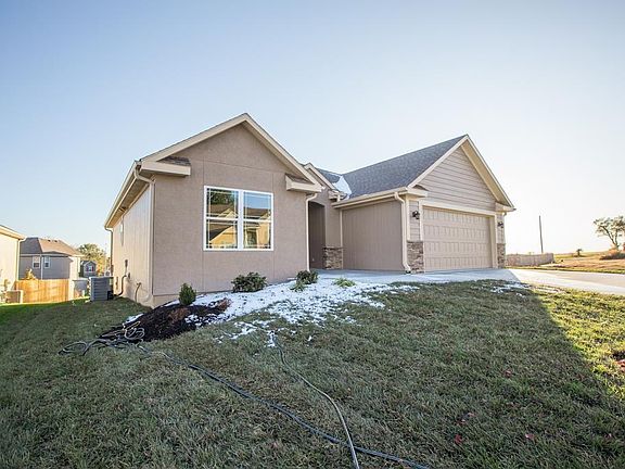 True ranch on corner lot. No steps. Popular floor plan - 2 bedroom 2 bath. XL great room with fireplace. Spacious gourmet kitchen has granite with a pantry to die for - walk in and walk around . Granite counters and ceramic tile in baths & laundry! Close to the new Peculiar Way exit ramp. 5 minutes to Raymore and Belton and 2 minutes to Raymore Peculiar Campus if you hit lights all green! Additional space can be added in walk-out basement. Quality builder. You can pick out carpet. Large deck with stairs. GDO too! SMALL SUBDIVISION ONLY ABOUT 39 HOMES ABOUT BUILT OUT!