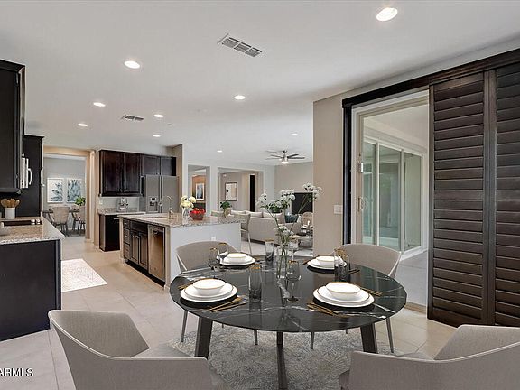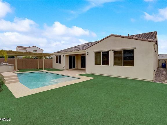 Welcome to this nearly new 4 bed, 2.5 bath, 3 car garage home in the fabulous community of Eastmark. This split floor plan is carpet free with tastefully designed plank tile throughout. Cleaning just became simpler! Large primary bedroom has luxurious en- suite bath with dual sinks separated by gigantic walk-in shower and huge walk-in closet. Kitchen features naturally stained cabinets, granite countertops, pantry, and new stainless-steel appliances with cook top range! The kitchen overlooks the spacious family room. Summer days will be enjoyed in the sparkling pool of this low maintenance backyard with artificial turf and built in bbq under the attractive pergola. You will enjoy the great location close to highly rated schools, shopping, and dining. Eastmark is growing into a community of its own! If Buyer uses the Seller's Preferred Lender for financing, Seller may contribute up to 2.5% of the Purchase price to buy down rate by 2% for the first year, 1% for the 2nd year.