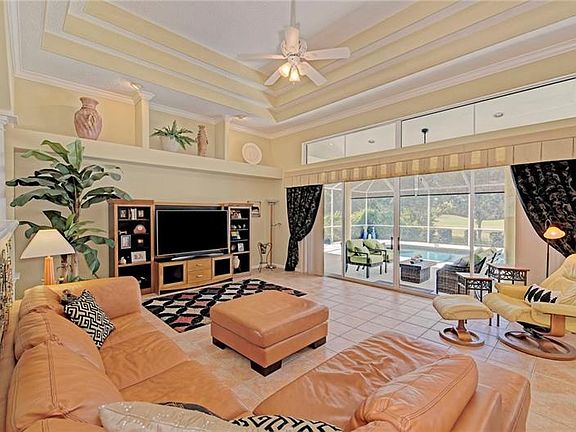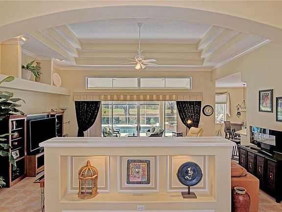 Welcome to this stunning renovated Ed Kolb custom built home situated on a prime cul-de-sac lot with open golf course views from almost everywhere you look! Enter through the double leaded glass entry doors only to discover your new home. The welcoming arched foyer, with dramatic columns, flows to the oversized tiled great room featuring architectural details, triple coffered ceiling with crown moldings, wall of sliding glass doors leading to an outdoor oasis. Enjoy the Florida lifestyle in the extended screened lanai offering recently resurfaced in-ground heated pool, spa, covered entertaining areas and pool bath. The formal dining room, with gleaming cherry hardwood floors, is adjacent to the updated kitchen offering raised panel cabinetry, newer stainless steel appliances, solid surface counter tops, tumbled marble backsplash, walk-in pantry and casual dinette. Retreat in the master bedroom that flows to the updated master bath with granite vanities, walk-in shower and separate tub. Two guest suites offers ample closet space and with "Jack & Jill" full bath. Other features: large den/office with entire wall of custom built-in bookcases, all bathrooms have been remodeled, plantation shutters, cherry hardwood & tiled flooring-only one room is carpeted, built-in Murphy bed, extensive crown molding, deep two car garage with side entry golf cart, all pool equipment replaced, exterior painted in 2018, wood work repainted 2018, paver driveway and walkway, extensive lush landscaping on all sides and more.
