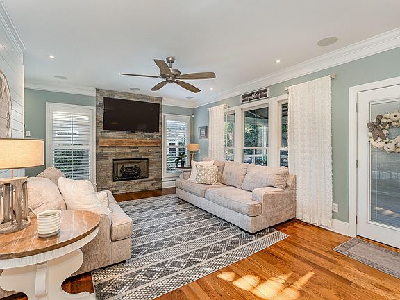 Nestled within the highly sought-after Porto Fino neighborhood in Wake Forest, this incredible home embodies a harmonious blend of elegance and luxury at every turn. As you enter through the grand two-story foyer, you're greeted by exquisite wainscoting and meticulously crafted shiplap that set the tone for sophistication throughout. The formal dining room boasts stunning inlaid wood floors complemented by distinctive architectural details, perfect for hosting memorable gatherings. A light-filled home office adorned with French doors, provides an ideal environment for productivity while still maintaining style. The open floor plan seamlessly connects the main living area, where a huge kitchen island artfully delineates the cozy family room featuring a warm gas log fireplace—an inviting centerpiece for relaxation. Culinary enthusiasts will appreciate the chef's kitchen equipped with premium upgrades including a gas cooktop complete with pot filler, sleek stainless steel appliances, ample pantry space, and custom cabinetry designed for both function and aesthetic appeal. With numerous windows adorned with plantation shutters, natural light floods each room while offering privacy when needed. Accommodating visitors is effortless with a thoughtfully designed first-floor guest room and full bath with walk-in shower that ensures both convenience and hospitality are prioritized. The large primary ensuite on the second floor serves as a serene retreat, featuring an elegant tray ceiling that elevates the luxury aesthetic. Large windows with plantation shutters bathe the room in natural light. The opulent primary bathroom is designed for relaxation, boasting a luxurious soaking tub alongside a spacious walk-in shower, an inviting sanctuary for unwinding after a long day. Granite countertops grace dual vanities equipped with upgraded above counter sinks, seamlessly blending style and functionality. The enormous walk-in closet showcases custom-designed shelving that caters to every organizational need. Accompanying this exquisite suite are two additional guest rooms with a full bathroom complete with a convenient shower/tub combination. Enhancing the versatility of the second floor is an expansive bonus room tailored for entertainment; it comes fully equipped with home theatre. As you step into the main floor sunroom, you'll be enchanted by its tranquil ambiance and picturesque views of the meticulously landscaped backyard below. Maintenance-free landscaping becomes effortless thanks to an upgraded artificial lawn that remains vibrantly green throughout all seasons, ensuring your outdoor oasis always looks pristine. This home features a two-car garage, whole home generator, fully encapsulated crawl space and Trimlight outdoor lighting, entire home purification system, refinished floors, upgraded solid wood doors and handles, freshly painted exterior and whole home camera and security system. There is also a Control 4 entire home automation system with whole home audio. But that's not all! The AC units and roof have recently been replaced. This home is truly luxury at its best!