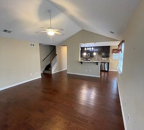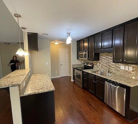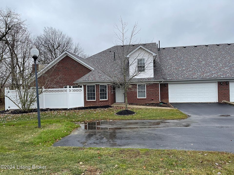 Beautiful 4 bedroom, 3 bath patio home on a cul-de-sac backing up to wooded area. Beautiful hardwood floors throughout except bathrooms and laundry. Large kitchen with granite countertops, dining area with bay window. Huge great room with vaulted ceiling opens up to enclosed patio. First floor master suite with walk-in closet, double bowl vanity, step-in shower, tile flooring. An additional first floor bedroom and full bath with tub/shower. First floor also features a spacious entry and laundry room opening to two car garage with access to pull down attic storage. Upstairs are two additional bedrooms and another full bath. Lots of closet space throughout. Ceiling fans, pool, clubhouse, and exercise room are a short stroll away. Close to shopping, restaurants and Gene Snyder.