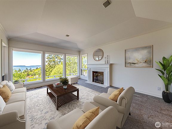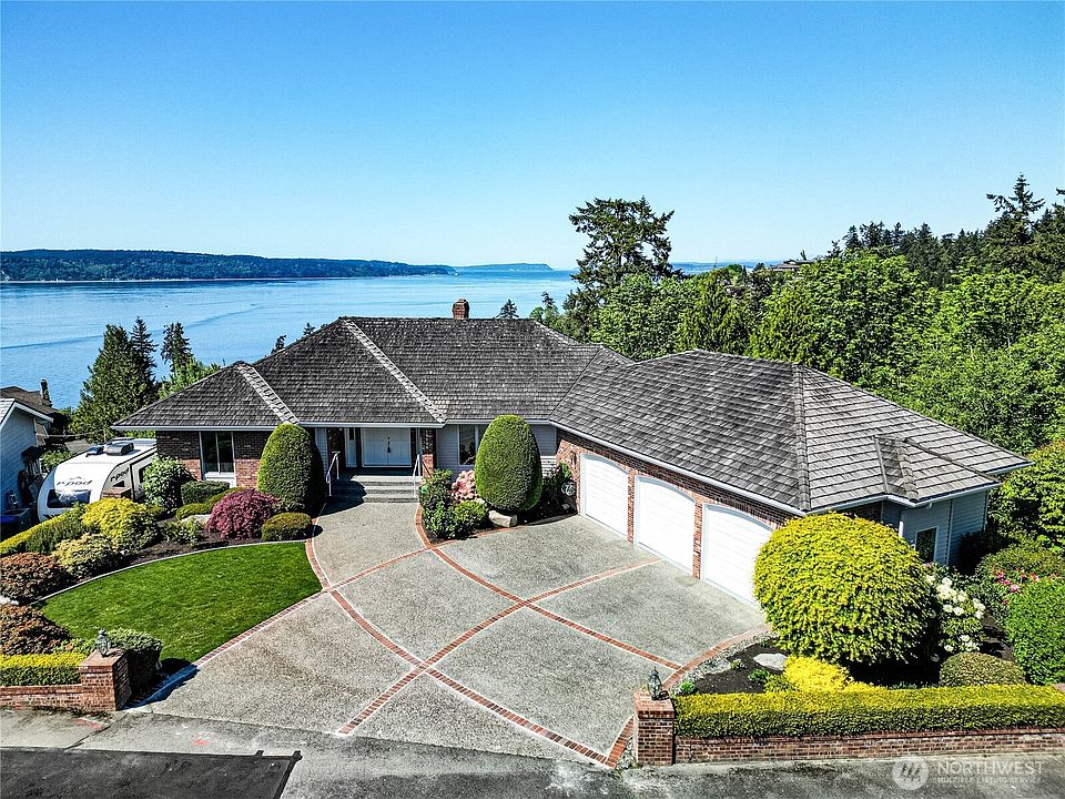 Breathtaking panoramic Sound, Island & Mountain views! This upscale home sits on a large, beautifully landscaped lot in a quite cul-de-sac with 3 car garage. Spectacular main level entry and floorplan showcase the stunning views from every room. The open kitchen and expansive deck, perfect for hosting, entertaining and soaking in the sunset, to the primary suite that promises serene mornings & peaceful evenings. The spacious and versatile lower level has awe-inspiring views and private outdoor living of its own. There is a huge bonus room with a 2nd kitchen, 2 additional generous size rooms and lots of storage. Your dream sanctuary awaits!