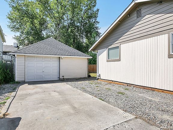 Affordable and adorable is what you get with this cutie! Step inside this updated rambler to a spacious living area open to kitchen w/ lots of cabinets, counter space & large dining. Huge master w/ step in closet & updated en suite. 2 sizable beds & updated bath. Outside, detached Garage w/ work shop space & GIANT back yard. Smaller area fenced in for entertaining & fun then step out of the gate & the yard expands back to the trees, fully fenced & space for gardening and more to enjoy!