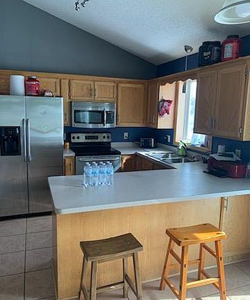 Spacious modified 2 story with main level bedroom, large deck off dining area, tiled floors, insulated and heated 3 car garage! Brand new flooring in main level family room. Walk in closet and walk thru bath in Primary bedroom. Backyard completely fenced woth sprinkle system. Great Location - Close to main hwy and shopping. This home has it all PLUS a 7 star upgraded home warranty.!!