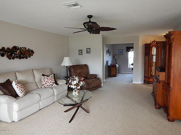 Very delightful 2/2/2 Wakefield model with a den located in Avalon. This home features an open concept kitchen/living area with a formal dining room and breakfast nook. Additional features include neutral colors and updated lighting and fans throughout. The kitchen has maple cabinets, pull out drawers and the refrigerator is less than 2 years old! There are newer windows in the lanai. This home has a private, fenced backyard; ideal for Florida living. HVAC replaced in 2016, upgraded carpet (less than 2 years old), also equipped with a water softener. Located in Ocala's premier, gated, active 55+ community, loaded with amenities, including golf cart access to two shopping centers.
