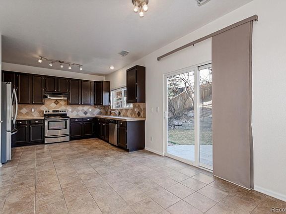 Welcome to your new home! An impressive two-story living room greets your guests with newly refinished hardwood floors and loads of natural light through the well-placed picture windows. The open floor plan flows into the kitchen featuring tile floor, tile countertops and backsplash, SS appliances, pantry, and an eat-in area. All new carpeting leads you upstairs to relax in the master retreat highlighted by plantation shutters, a full en suite bathroom and walk-in closet with built-in shelving. Two additional spacious bedrooms and full bathroom on the second floor ensure enough room for the whole family. Enjoy Colorado's amazing weather from your beautiful fully-fenced backyard boasting tiered landscape, bistro lights, and a stamped concrete patio. Coveted Douglas RE-1 schools: Arrowwood Elementary, Cresthill Middle and Highlands Ranch High School are all within 1 mile of this home! Nearby trailheads, rec centers, restaurants and shopping make this home and location difficult to beat; come see it for yourself fast!