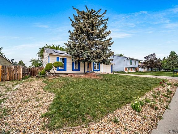 This ranch home move-in ready, has new paint and new flooring throughout. 3 bedrooms conveniently located on the main floor with a perfect functional floor plan for entertaining. The large kitchen allows for plenty of counter space for the holidays. This property has owed roof solar panels provide significant energy saving bills. Large fenced back yard. Close to parks and 2 large shopping centers. Easy access to major highways, commuting to Denver and surrounding areas is a breeze. SELLER WILL PAY-OFF THE SOLAR SYSTEM REMAINING LOAN BALANCE FOR BUYERS AT THE CLOSING. Don't miss out on the opportunity to make this lovely house your new home!