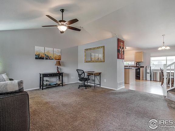Impeccably maintained 4-level home, crisp and fresh throughout. Step up to an east-facing front porch where you are welcomed to a vaulted living room that seamlessly transitions to an updated kitchen featuring an island and pantry. The spacious family room is highlighted by a warm fireplace and offers the convenience of a half bath/laundry combo. Upstairs, you'll find the primary suite with private bath, along with secondary bedrooms and a bonus loft space. The unfinished basement is filled with potential to customize. Outside, enjoy a corner lot complemented by an expansive west-facing poured concrete patio. Nearby parks and close proximity to miles of trails makes this home a perfect location for outdoor enthusiasts. This home has been thoughtfully updated making it move in-ready. Don't miss this opportunity!