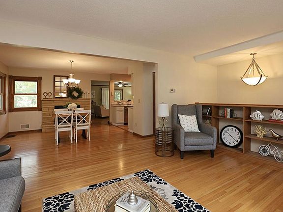 Open floor plan rambler featuring 4 bedrooms, 3 baths, living room with refinished HW floors, spacious rooms, 3 bedrooms on main level, wood burning fireplace on main level and electric fireplace in LL, large family room with direct access to 3 season porch, large deck, newer roof, brand new central AC and more. Fabulous Normandale Heights neighborhood in West Bloomington located blocks from shops, churches, elementary schools, Normandale College and just minutes from freeway.