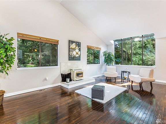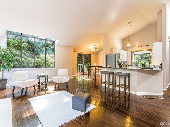 Serene, Wooded Retreat on a Private Greenbelt lot. 3 bed + loft, 2 bath open concept floor plan offers vaulted ceilings, eat at island kitchen w/Quartz counters, lrg 2-tierd deck off dining overlooking the greenbelt. Another large deck off the Master. 2 closets & Heated/Jetted tub. Huge laundry & bed down. Extensive hardwds. 2 yr old roof, new furnace, water tank, freshly painted in & out. Great location near golf course, Boeing & the waterfront. EZ access to 1-405 & I5. Harbour Point Schools!